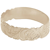 14K Gold Custom-Made Honu (Turtle) Queen Scroll Raise Letter Cut Out Bangle (Thickness 1.25mm)