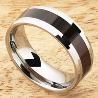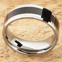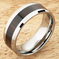 8mm Cocobolo (Red Wood) Inlaid Tungsten Beveled Edge Wedding Ring