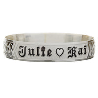 Sterling Silver Custom-Made Plumeria King Scroll Black Enamel Raise Letter Smooth Edge Bangle (Heavy 1.75)