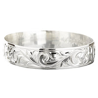 This beautiful bangle is made with 925 sterling silver with queen scroll engraving finished. Hawaiian Scroll or Heirloom Jewelry has flourished through the years since Queen Victoria gave a gold scroll bracelet to Queen Lili'uokalani in the 1800s. Throughout the years this design has been adopted and transformed to represent Hawaiian culture.