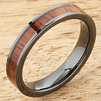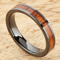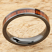 4mm Natural Hawaiian Koa Wood Inlaid High Tech Black Ceramic Flat Wedding Ring