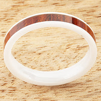 4mm Natural Hawaiian Koa Wood Inlaid High Tech White Ceramic Flat Wedding Ring