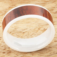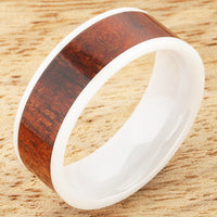 8mm Natural Hawaiian Koa Wood Inlaid High Tech White Ceramic Flat Wedding Ring