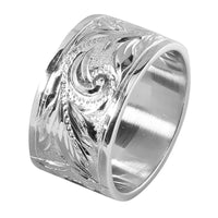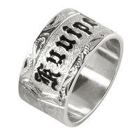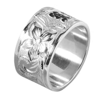 Sterling Silver Custom-Made Hawaiian Heirloom Ring Black Raise Letter 12mm Smooth Edge (Heavy Weight)