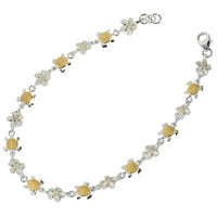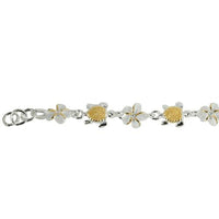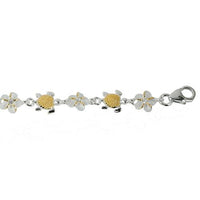 Sterling Silver Two-Tone Yellow Gold Plated Honu (Hawaiian Turtle) and 6mm Plumeria with CZ Bracelet