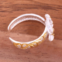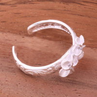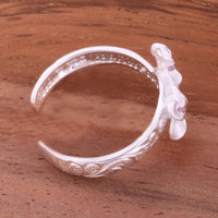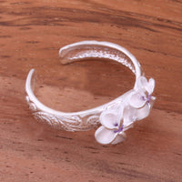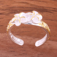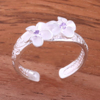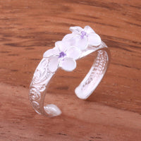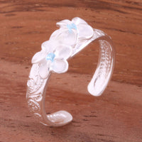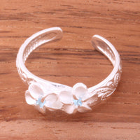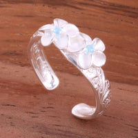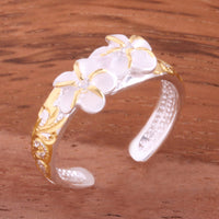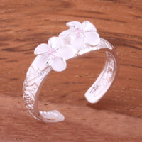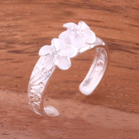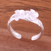 Hawaiian Scroll Two 6mm Plumeria with Clear CZ Smooth Edge Toe Ring