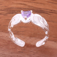 Hawaiian Scroll with Clear Heart CZ Cut Out Edge Toe Ring