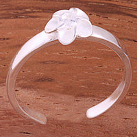 Single 4mm Plumeria with Clear CZ Toe Ring